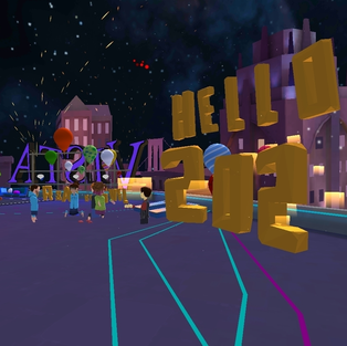 Last week I found myself celebrating the New Year with the VR & AR of Southwest Florida Meetup group hosted by the very creative Evgeniya Simmons. She played around with the basic elements provided by Altspace VR to create a custom designed world for our party. The space was filled with balloons, custom signs, a powerpoint presentation, fireworks, games... The list goes on (did I forget to mention the boombox? There was a boombox with party music!)